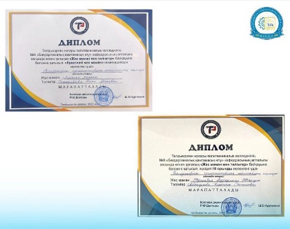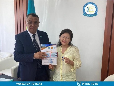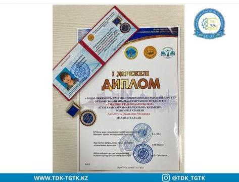 - «ТМД-ның үздік педагогы -2022» атты халықаралық байқауына қатысқан колледжіміздің ұстазы А.Оразалина «ТМД-ның үздік педагогы – 2022» төсбелгісімен және Халықаралық дәрежедегі І дәрежелі дипломмен марапатталды. |