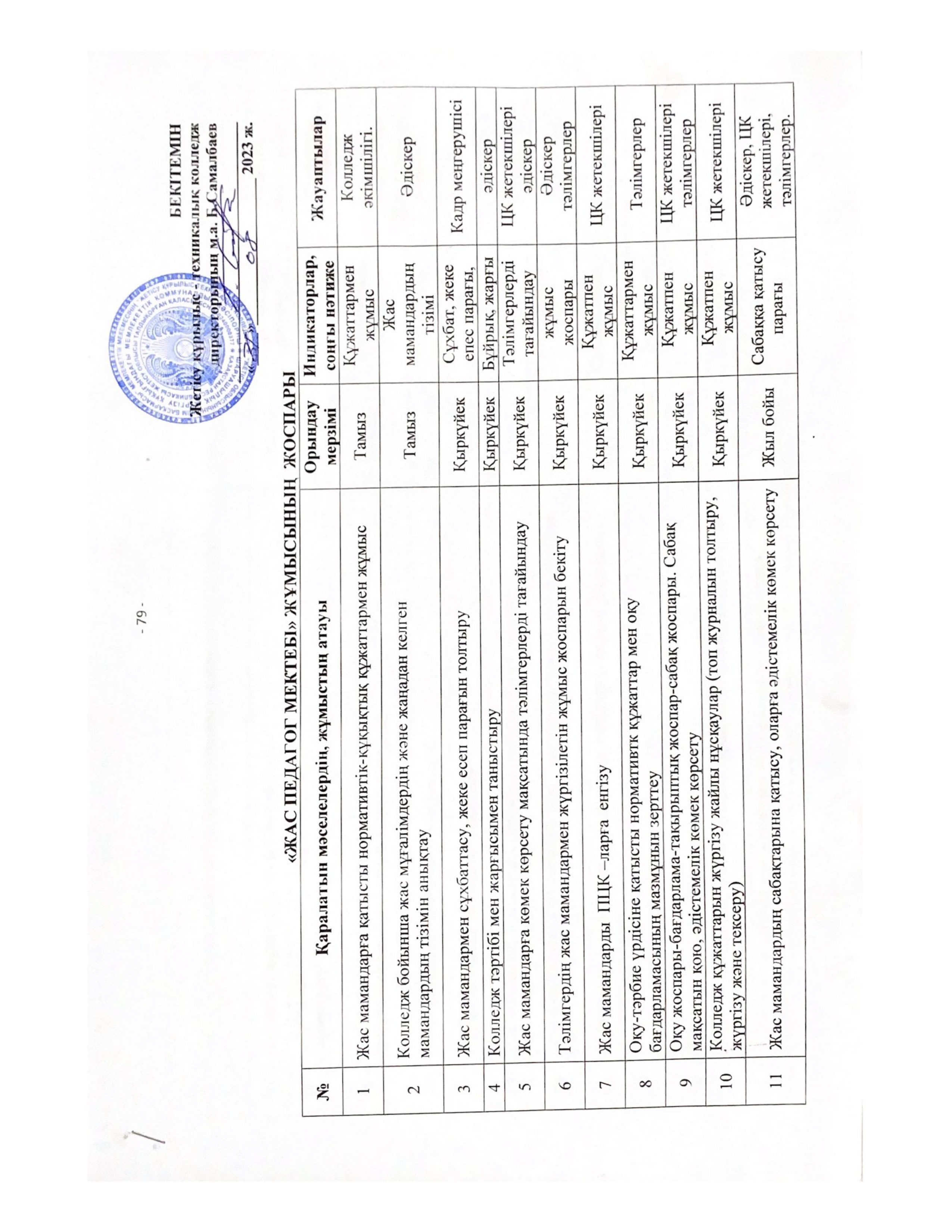 2023 - 2024 оқу жылындағы «Жас педагог мектебі» жұмысының жоспары