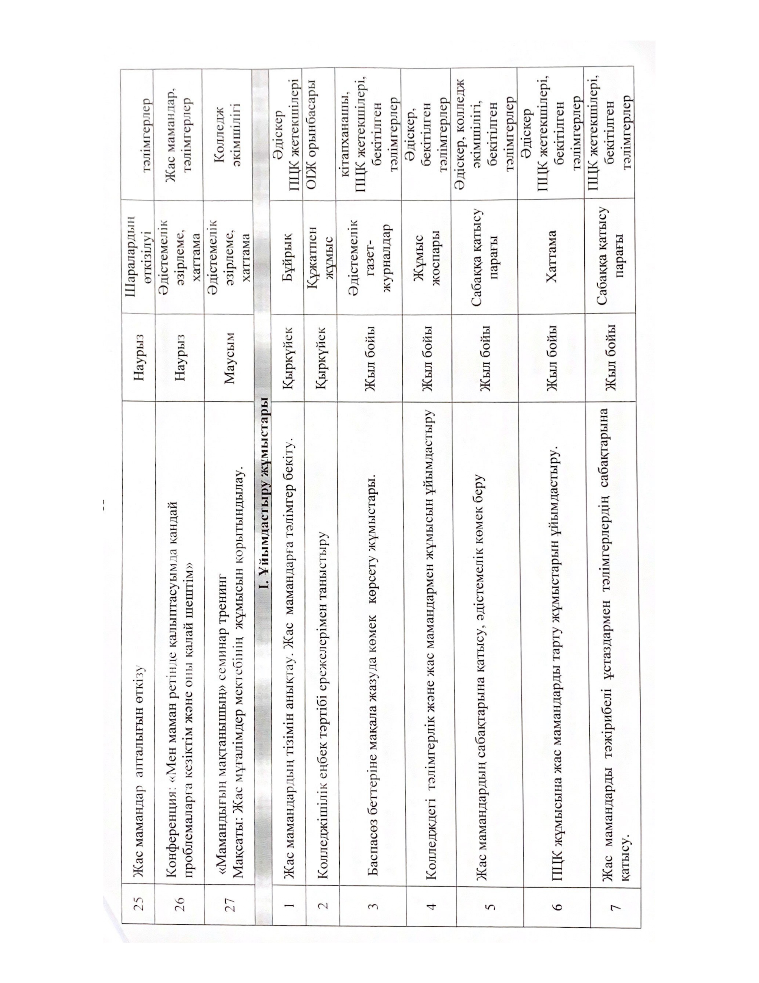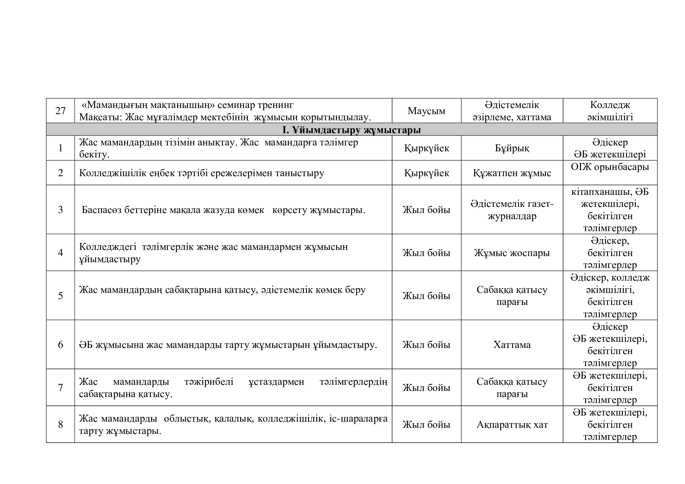 Колледжде қызмет атқаратын жас мамандар туралы мәлімет