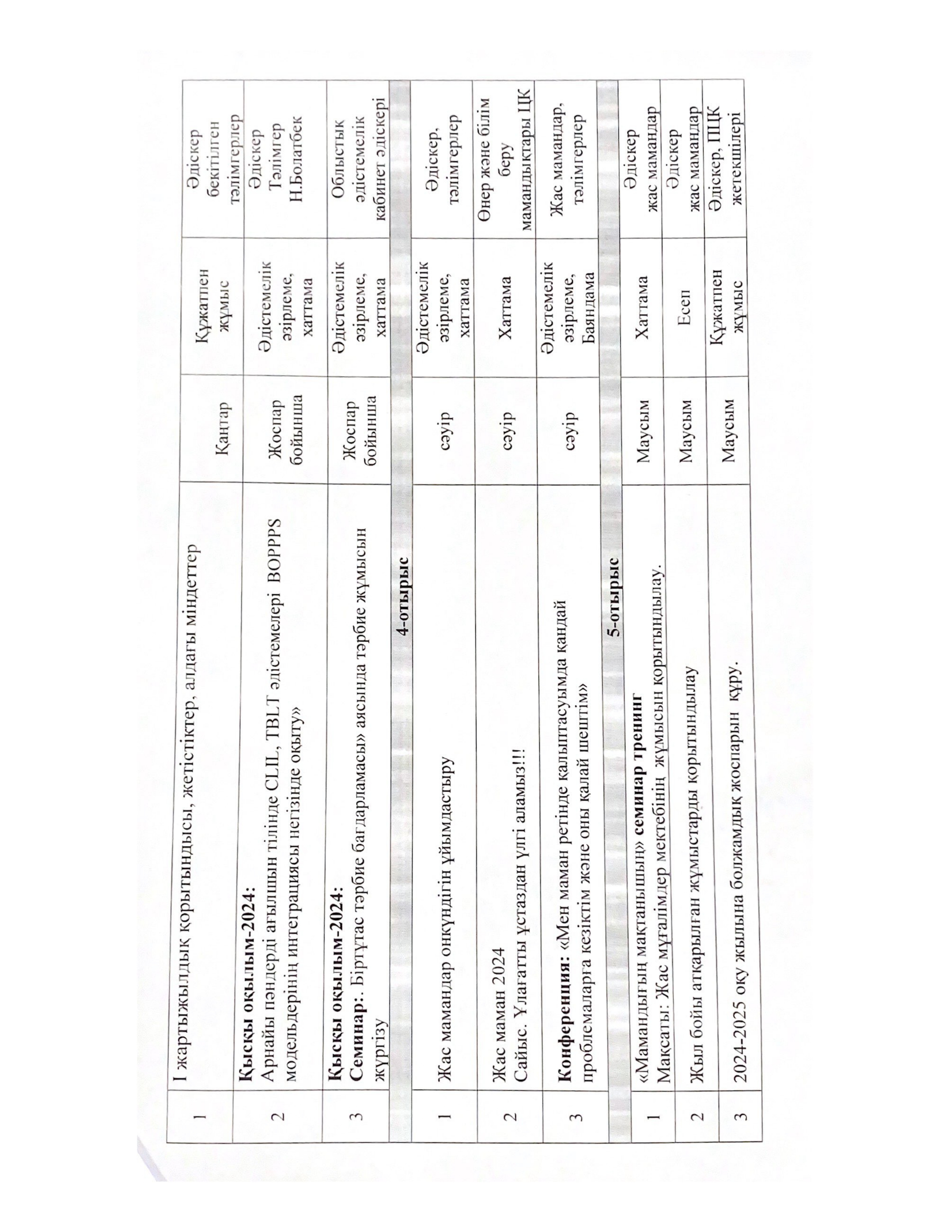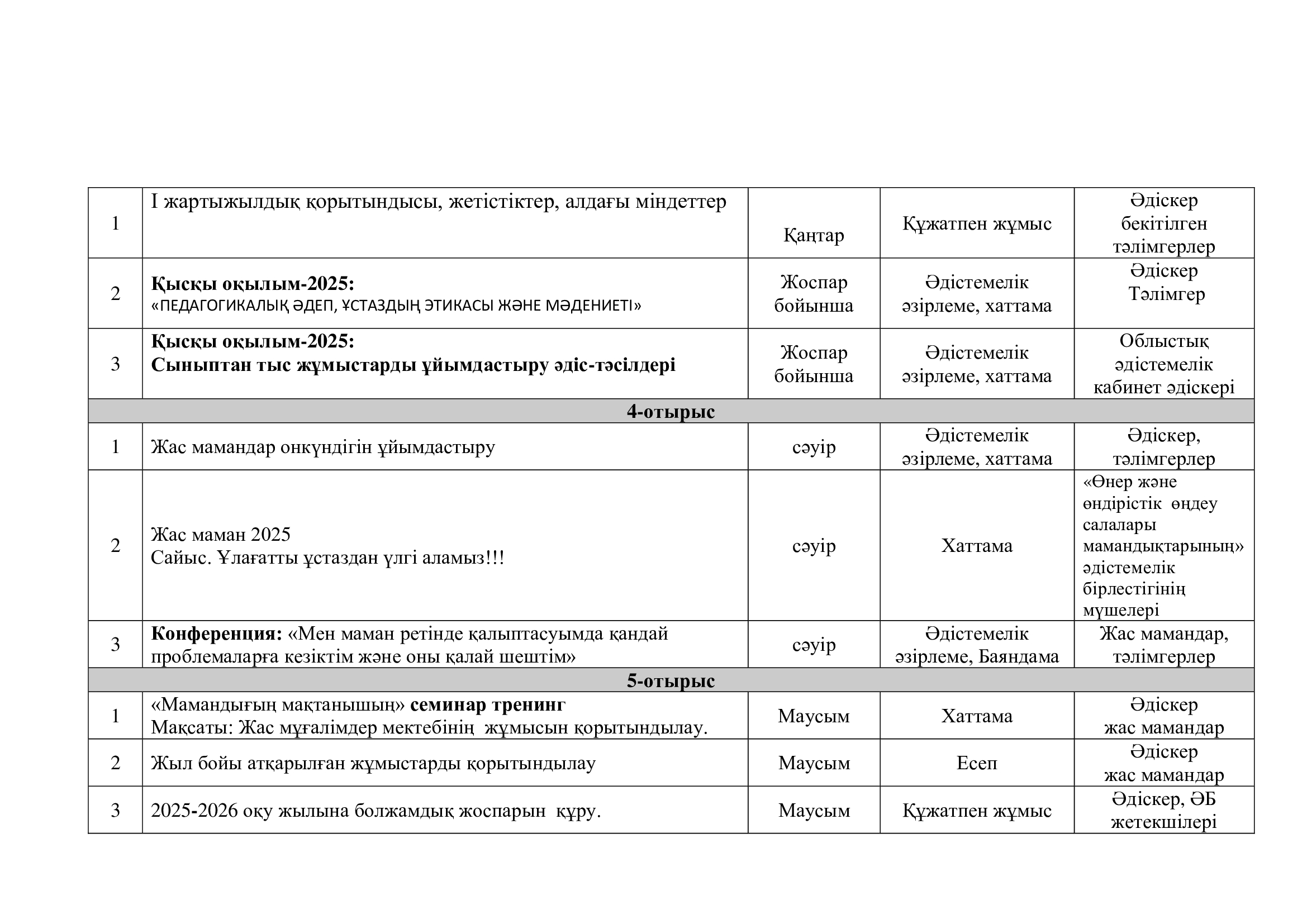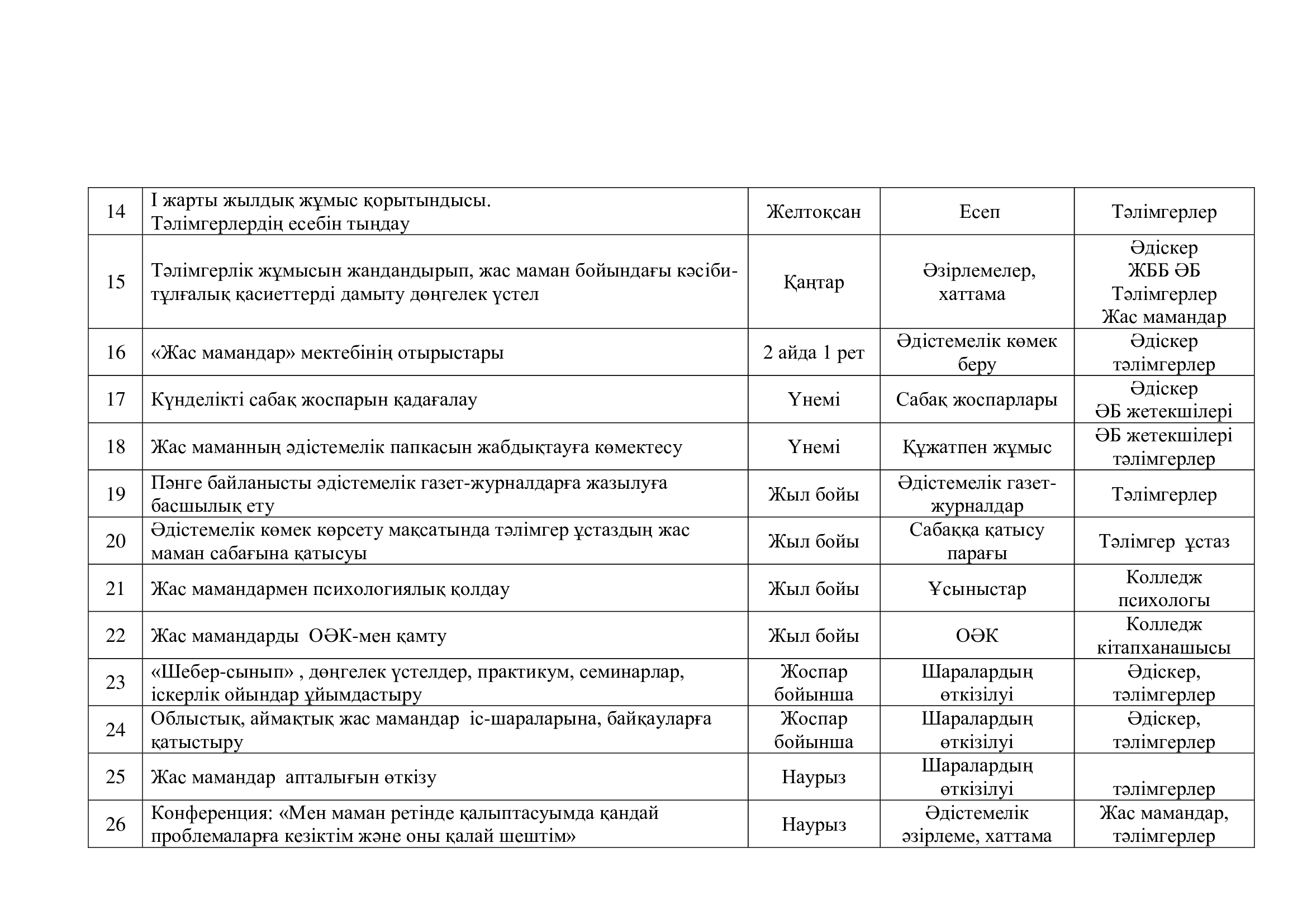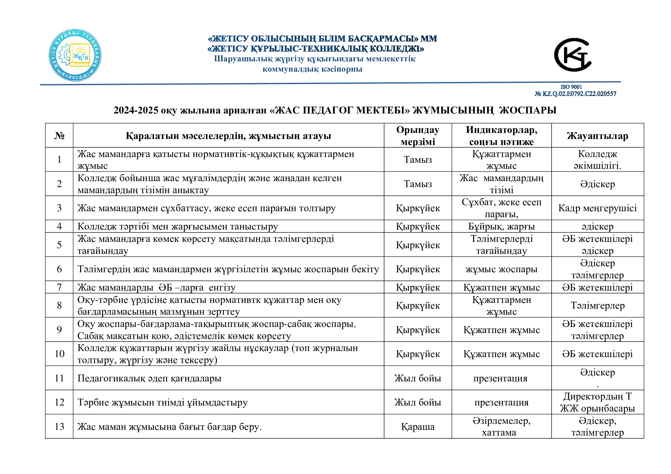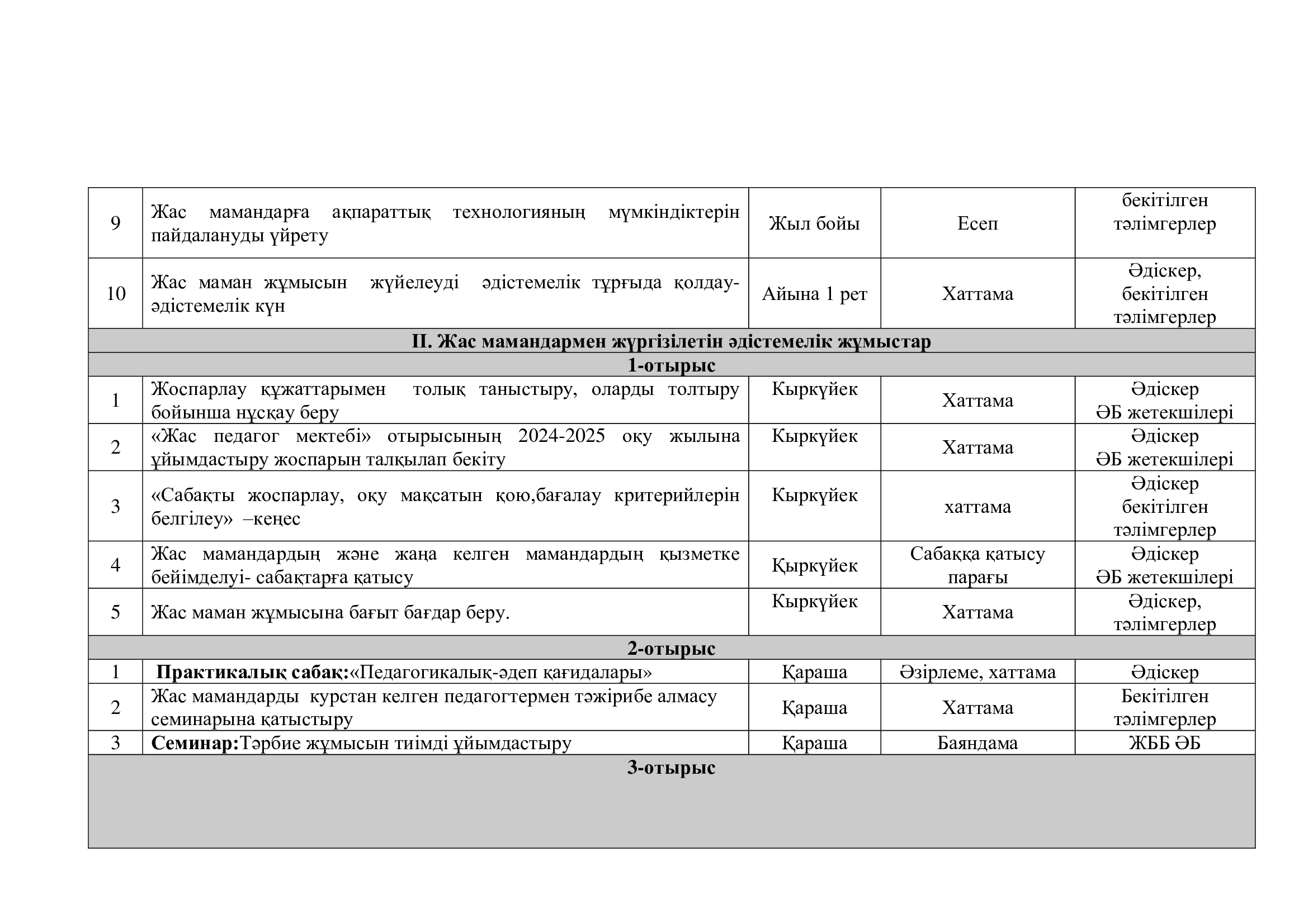 2024 - 2025 оқу жылындағы «Жас педагог мектебі» жұмысының жоспары