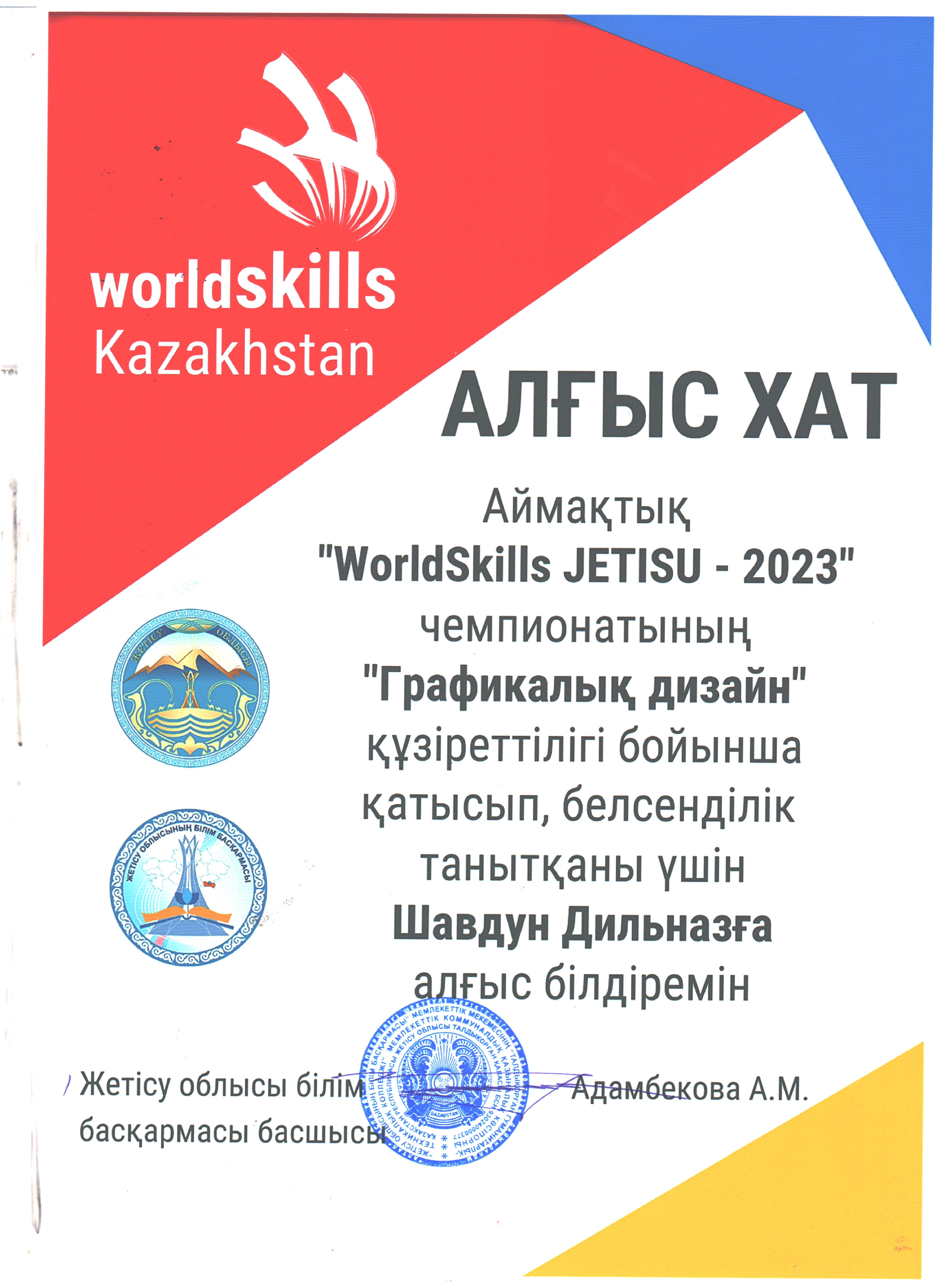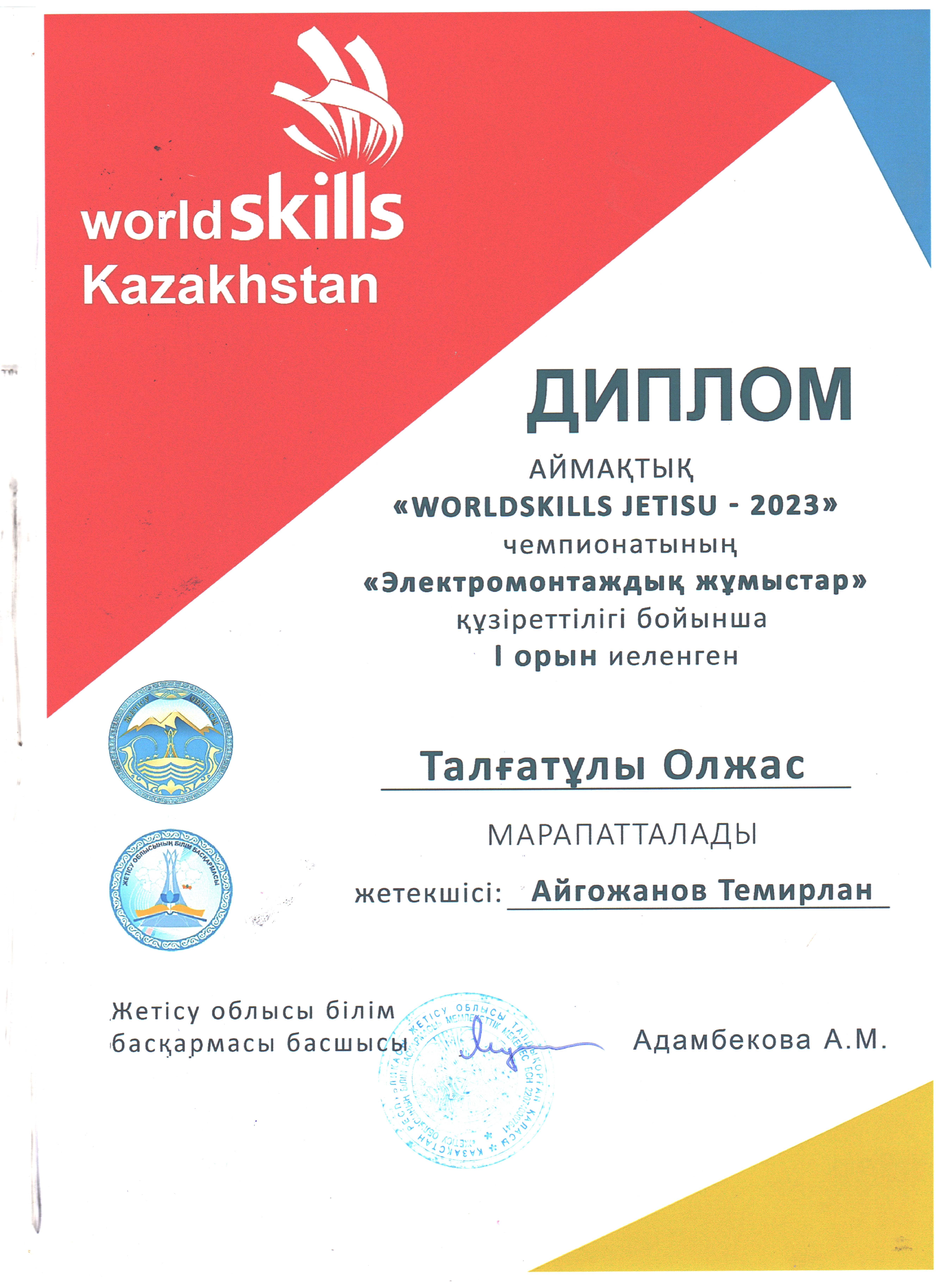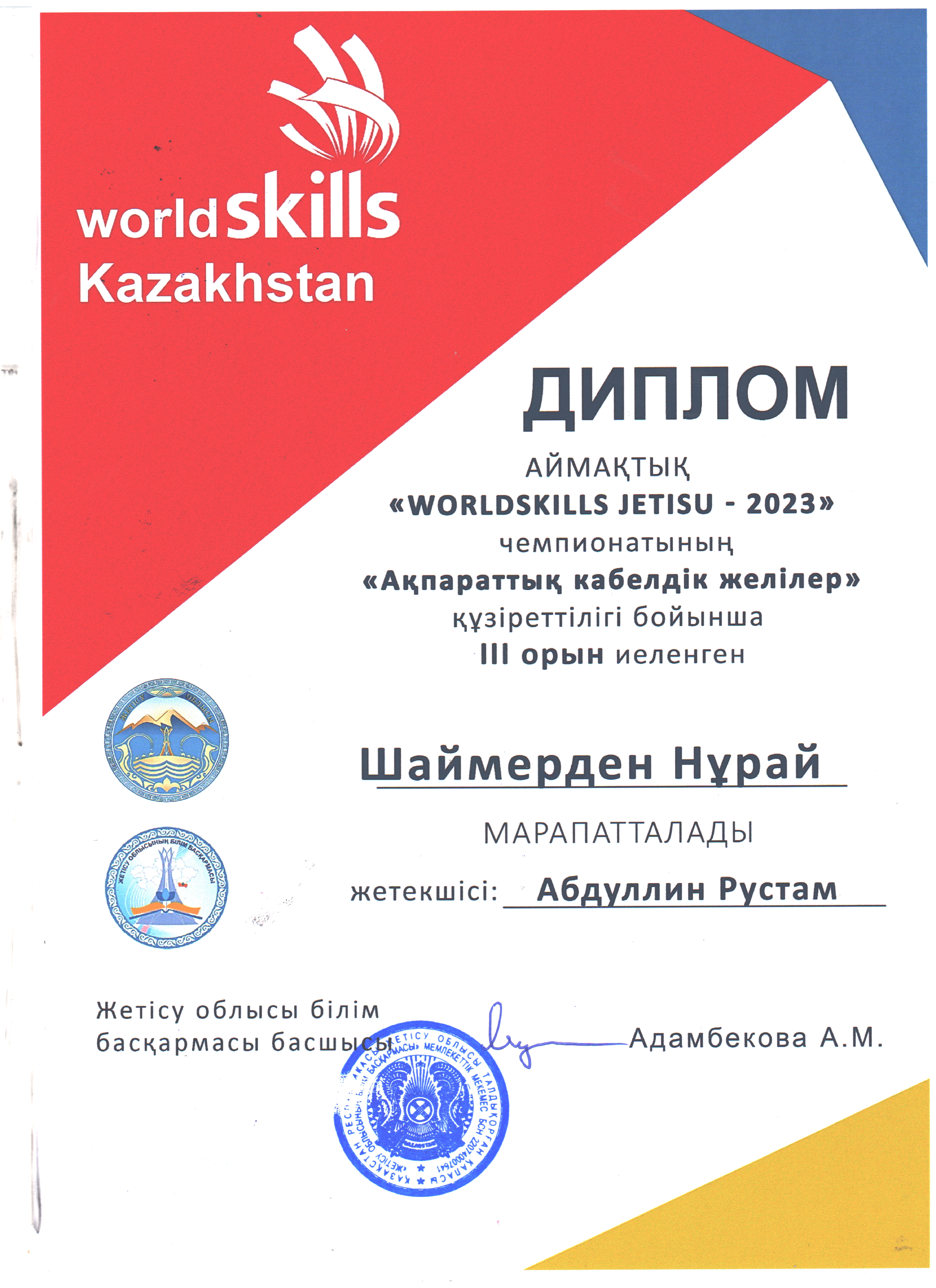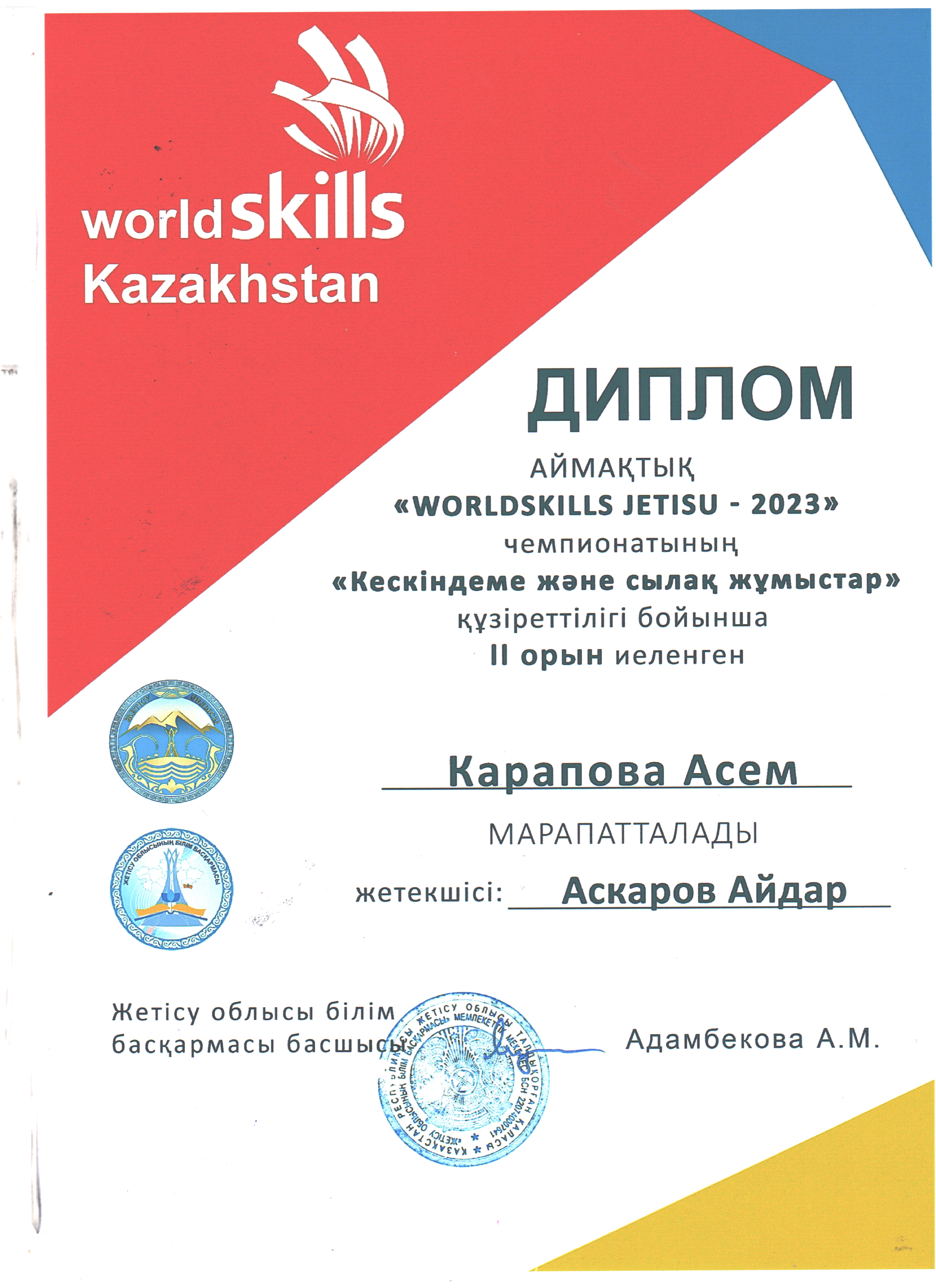 World skills Zhetisu 2023 аймақтық және аймақаралық чемпионаттарының нәтижелері