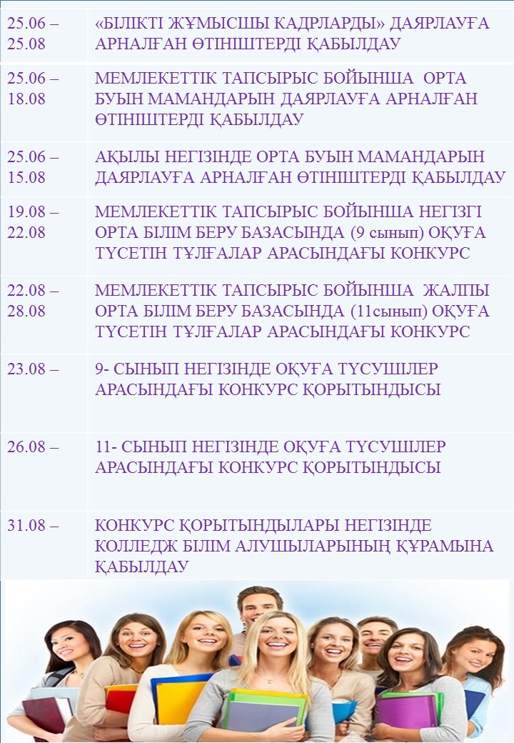 Мемлекеттік тапсырыс бойынша колледжге қабылдаудың нұсқаулығы