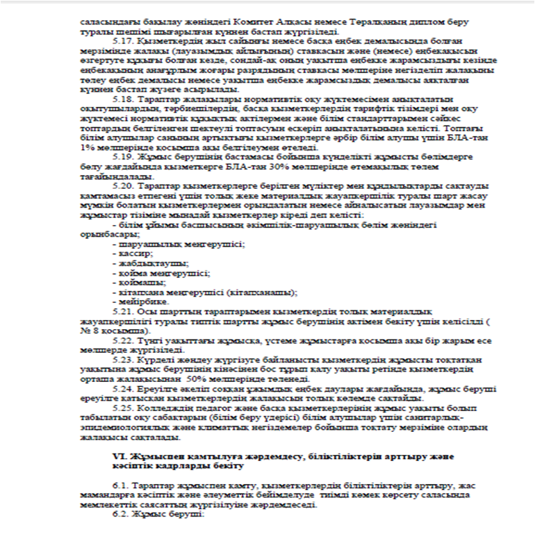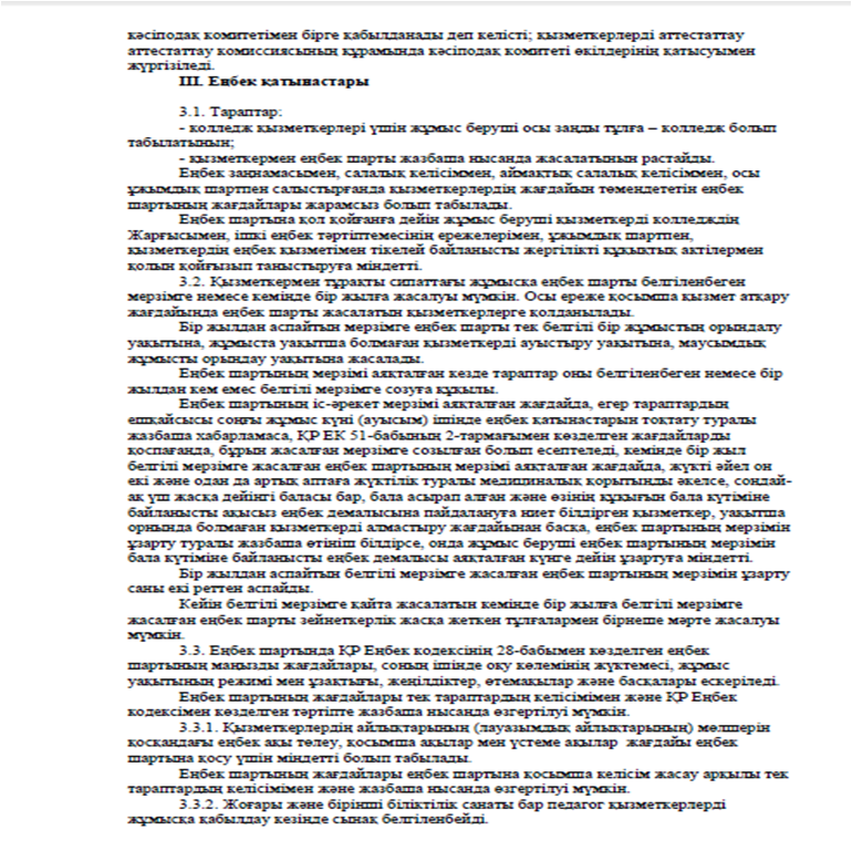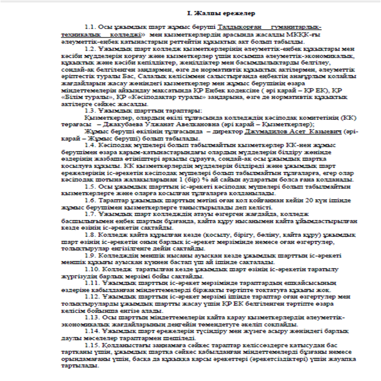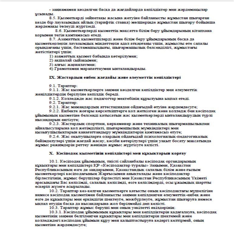 Кәсіподақ мүшелері жастармен бірге стратегиялық дамудың негізгі ресурсы ретінде колледж дамуының әлеуметтік-экономикалық жоспарын жоспарлау бойынша жұмыстарды ұйымдастырады. Мұның бір дәлелі – жастарды шығармашылық күш ретінде колледж өмірінің барлық саласы мен бағыттарына қатыстыру. Кәсіподақ комитеті барлық жағдай жасап, жастарды жан-жақты дамыту үшін бірнеше бағыттар бойынша дамиды: Колледждің қоғамдық өмірінде жастар ұйымы мен жастарды дамытуға көмектесетін тиімді база құру. Қазіргі кезде әкімшілік пен кәсіподақ комитетінің бастамасы бойынша қызметкерлердің еңбек жағдайын жақсартуға арналған ұжымдық шарт құрастырылып іске асырылуда.