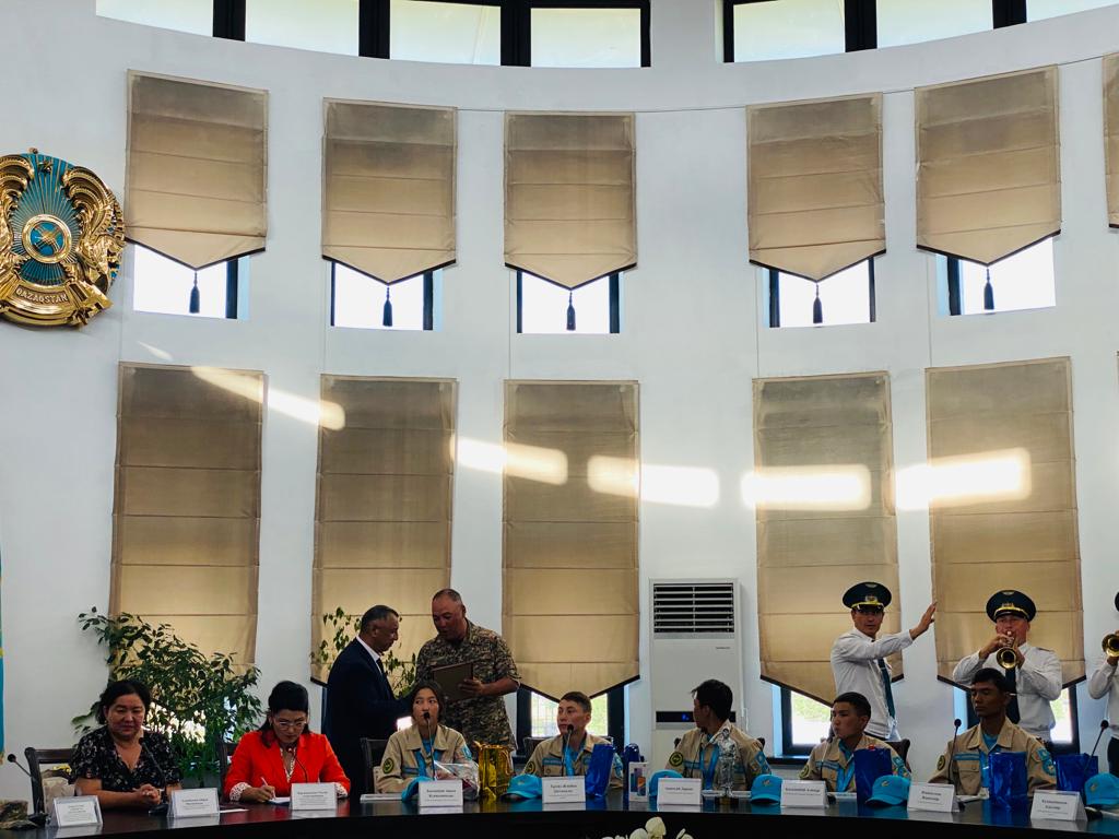 Әскери-патриоттық жастар жиынына қатысушыны жоғары деңгейде дайындағаны үшін колледж директоры А.Джумадилов Алматы облысы қорғаныс істері департаментінің «Алғыс хатымен» марапатталды.